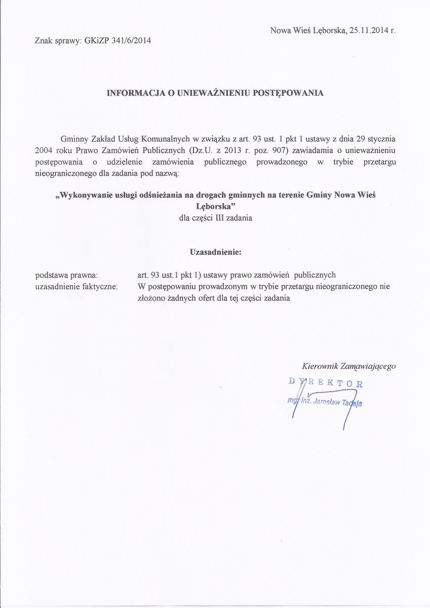Utworzenie dokumentu informacja o uniewaznieniu postępowania dla części III zadania